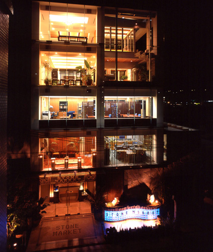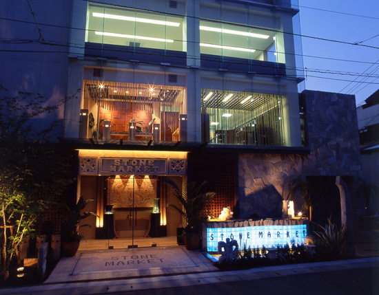 この建物は全国展開するストーンマーケットの事務・仕分け・発送等の業務を担う本社ビルとして計画された。ストーンマーケットは全世界から集めた装飾品としての石やアジアン雑貨などの販売をしている店であるが、その石のもつ色と、輝きには心奪われる物が多く、さながら宝石のようである。