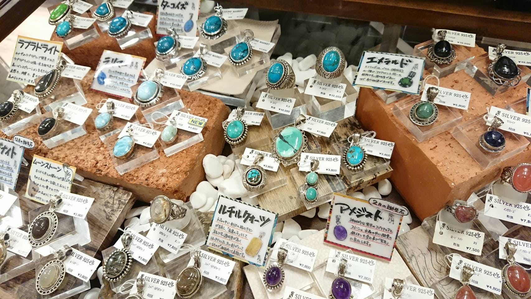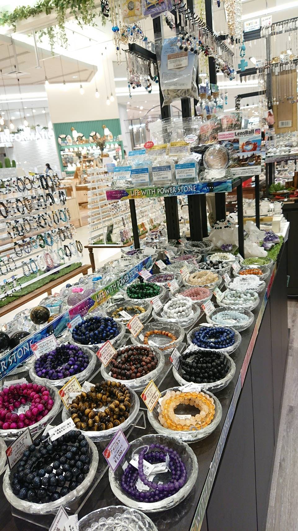 店内には、大人から子供まで楽しめるキラキラ輝く天然石やアクセサリー
