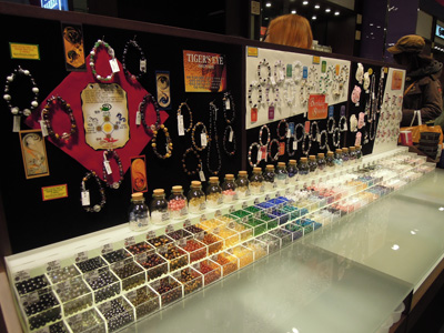 ▲お好きな天然石を選んでオリジナルのアクセサリーが作成できる、「お作りコーナー」